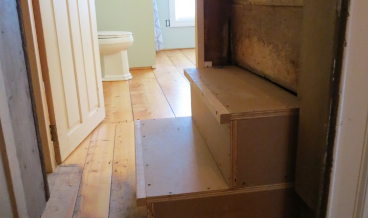 One challenge we had when we created the 2nd floor bathroom was how to keep the access to the attic which is located up steep stairs in a unique little passage way between the hall and the bathroom, and provide … Continue reading Winter Work – preserving character
