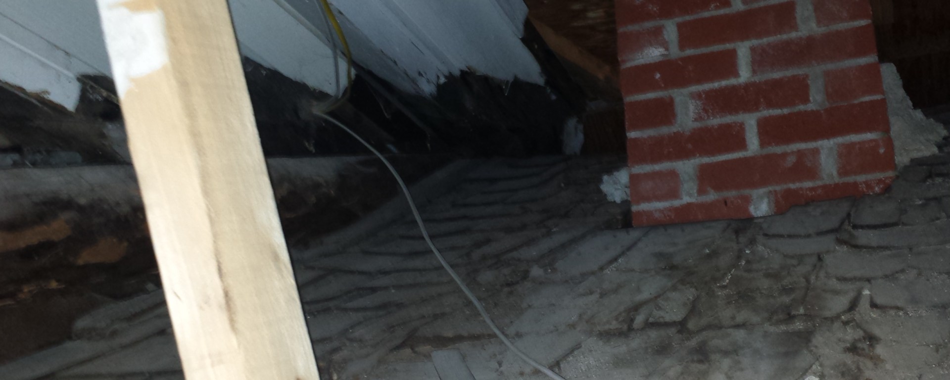 One alteration that was done when the kitchen addition was built was the decision to build a new roof over the existing one built in 1811. Instead of tearing the old roof down they decided to build right on top of it. Therefore we have to deal with a very unique roof above the kitchen and we are only learning now the possibilities and limitations due to this condition. Here are some pics of the Roof Within a Roof. (note the brick chimney that has been cut off and is supported in the attic only by frame.)