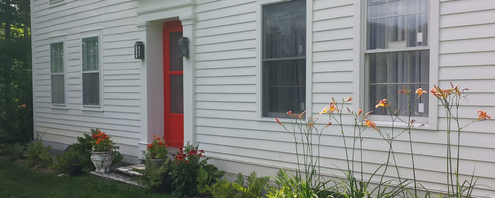 See pictures below of the before and after exterior work to the siding, roof, windows and plantings around the house.